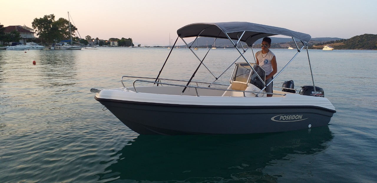 Poseidon R455. Ambarcatiune de agrement din gama Open pentru mare si ape interioare. Barcă nouă Poseidon R 455 vine în echipare de bază fără motor, si am fi bucurosi sa va facem o oferta cu motor, accesorii, echipamente optionale si remorca. Pretul afisat este pentru o barca fara motor cu dotari standard. Descarcati oferta completa pentru a va configura barca dorita. Verificati si oferta cu modelele gata configurate disponibile din stocul nostru. Toate modelele Poseidon sunt de obicei disponibile în 6 - 8 săptămâni. Disponibilitate mai rapidă posibilă prin aranjare. Imaginile arată opțiuni care sunt supuse unui cost suplimentar.